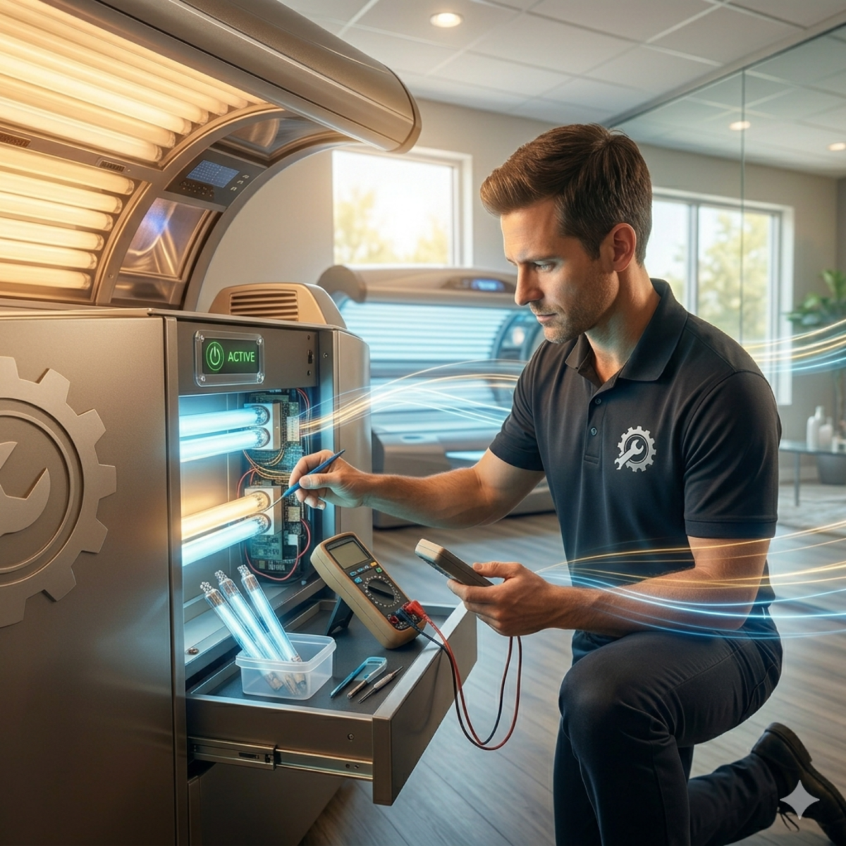 Peşəkar komandamız solaryum aparatlarının quraşdırılması, UV lampaların yenilənməsi və orijinal ehtiyat hissələri ilə təminatını operativ şəkildə həyata keçirir.